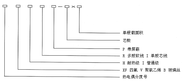 表示分度號為K,延伸型補償導線(xiàn),四氟絕緣層,單股芯普通級,帶屏蔽層,二根芯線(xiàn),單根截面積為1.5mm2