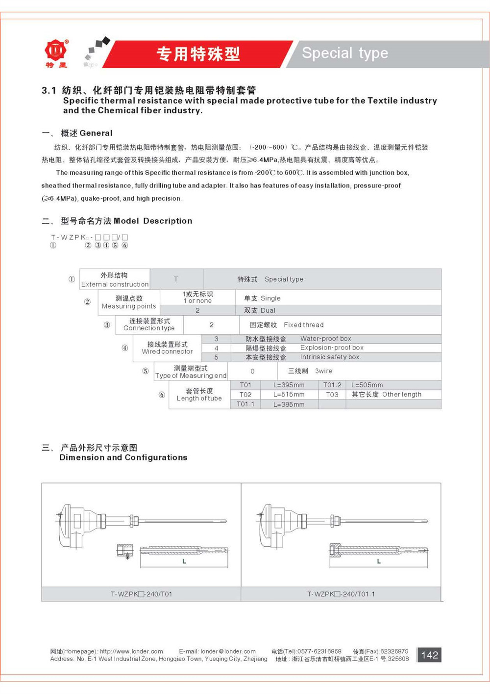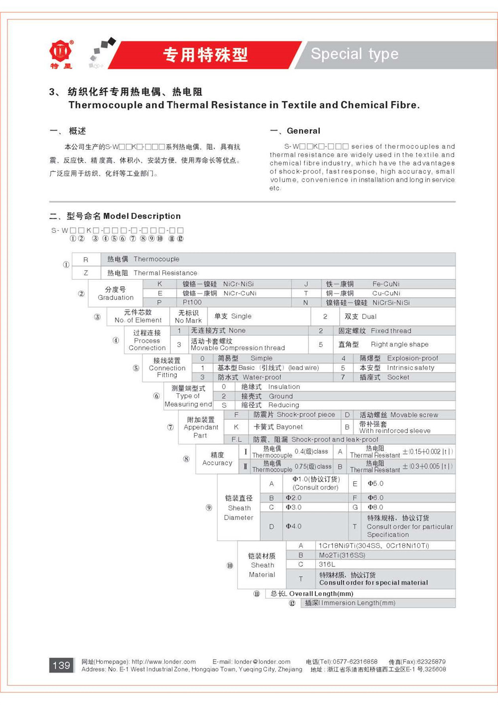 紡織、化纖部門(mén)專(zhuān)用熱電偶、熱電阻